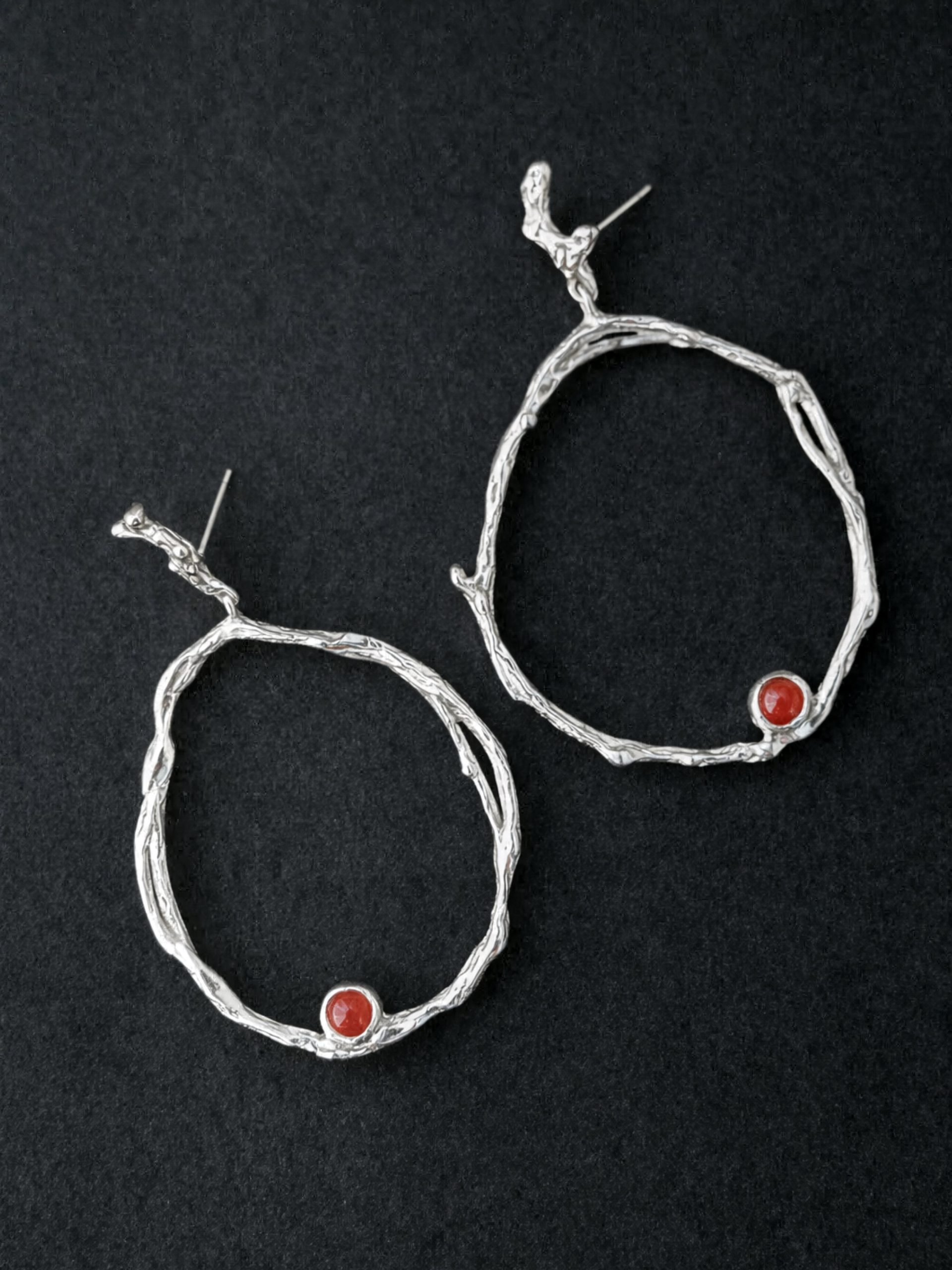 These large statement earrings embody movement in its most expressive form. Their bold, sculptural shape is designed to move freely, swaying with every gesture and drawing the eye instantly. Organic lines follow the irregular rhythm of nature. Unapologetically striking and far from subtle, this piece captures flow, tension, and transformation, made to be seen, felt, and remembered.