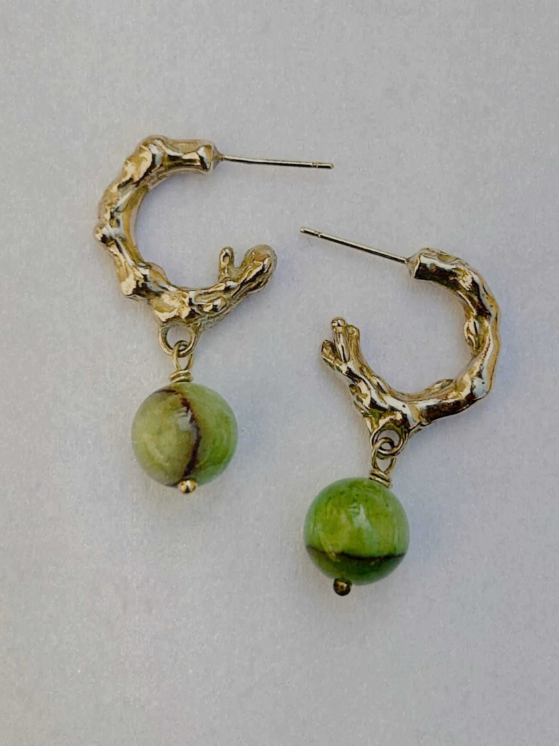 The Flow hoop earrings are designed for everyday wear when you want to bring a sense of quiet uniqueness into the ordinary. Their organic curves follow the irregular rhythm of nature, as if shaped by the material itself. The color of the gemstone beads adds a subtle contrast to the sculptural form, creating a piece that feels special without being overstated. Not an average hoop, yet effortlessly wearable, made to move with you through your days.